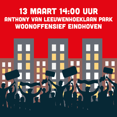 Om deze redenen gaat Woningoffensief Eindhoven op 13 maart om 14:00 uur samen met iedereen die onze waarde delen, ten strijde door een protestmars door Eindhoven te lopen.